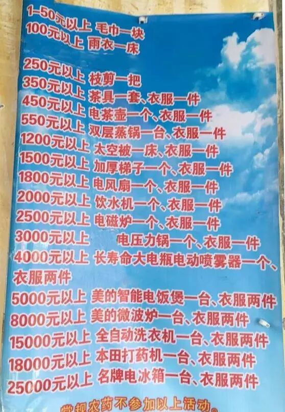 活动当天,农资产品一应俱全,礼品琳琅满目。